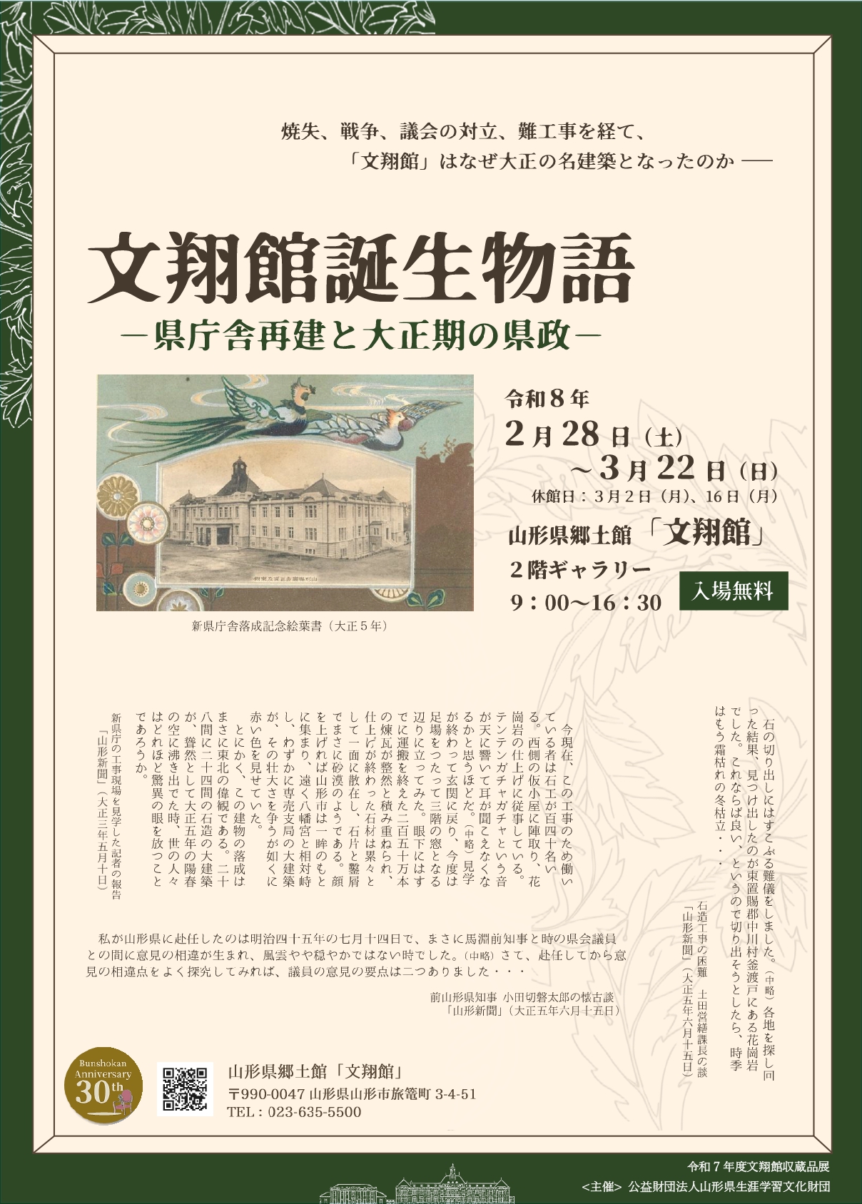 令和7年度文翔館収蔵品展「文翔館誕生物語-県庁舎再建と大正期の県政-」