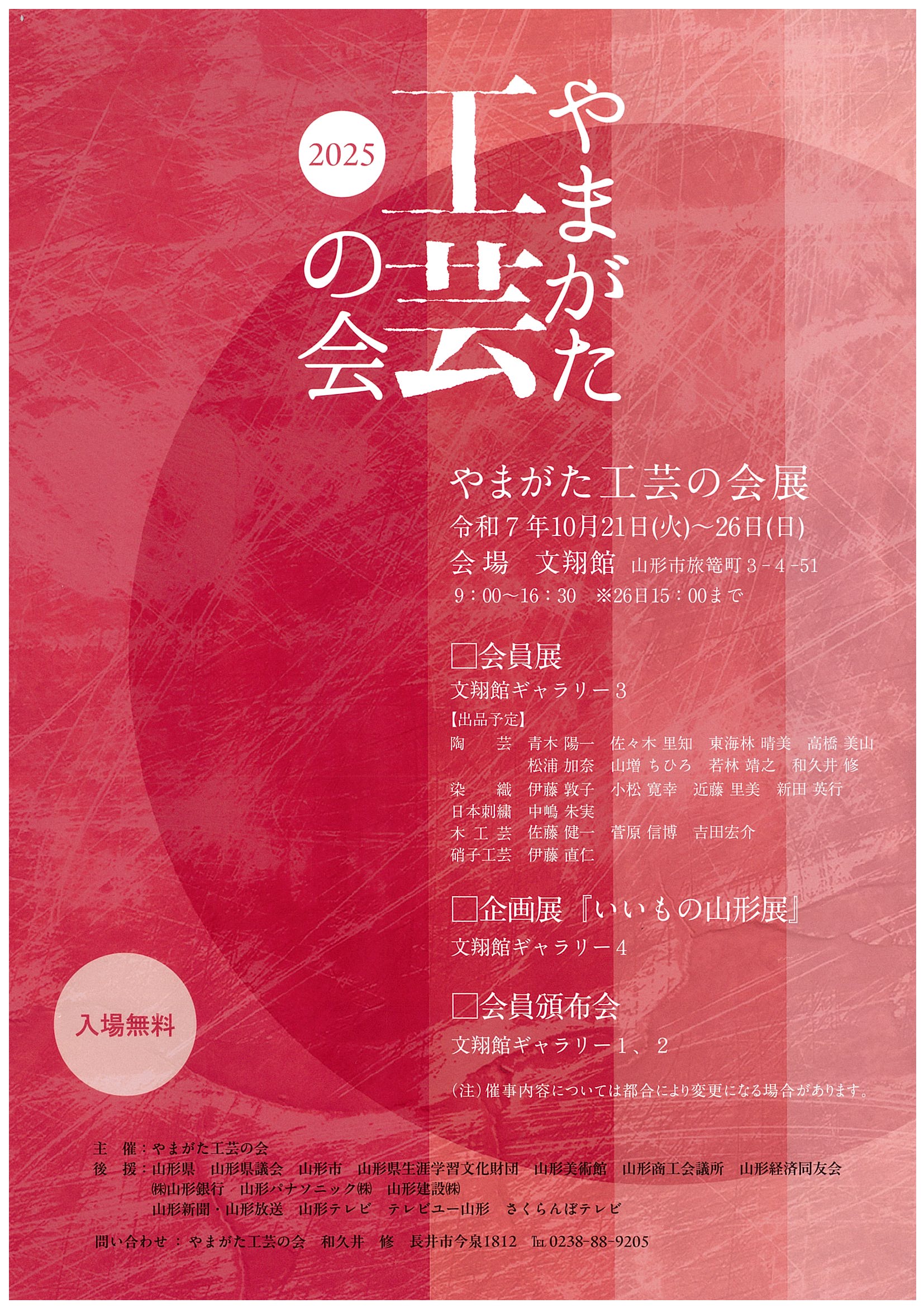 名称:やまがた工芸の会 和久井修 電話:0238-88-9205 FAX: Eメール: ホームページURL: |