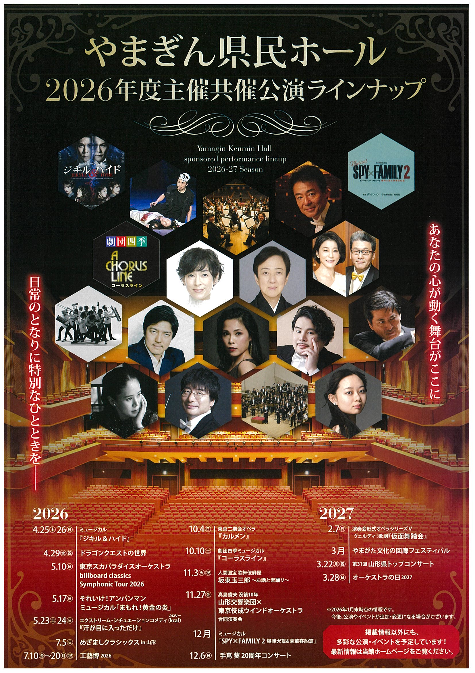 やまぎん県民ホール2025年度主催共催公演ラインナップ