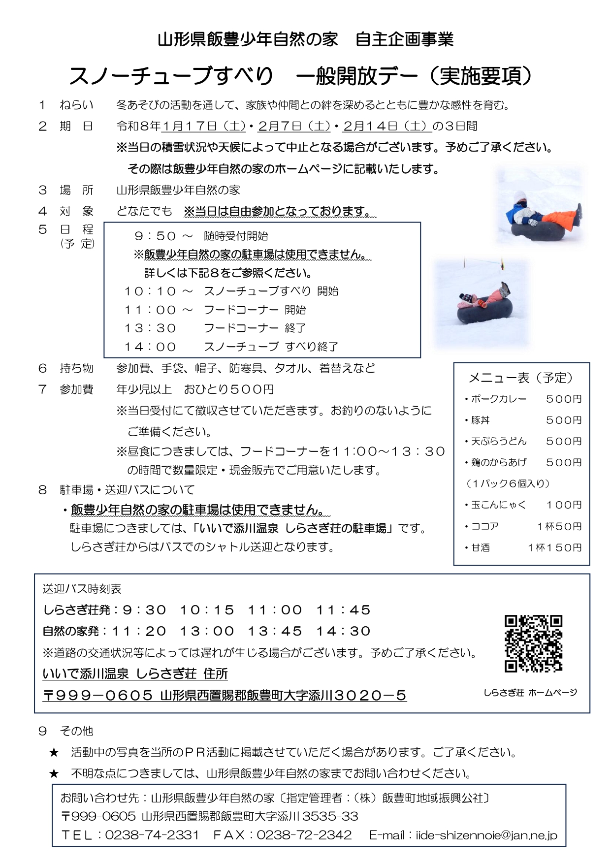 山形県飯豊少年自然の家 自主企画事業 スノーチューブすべり 一般開放デー