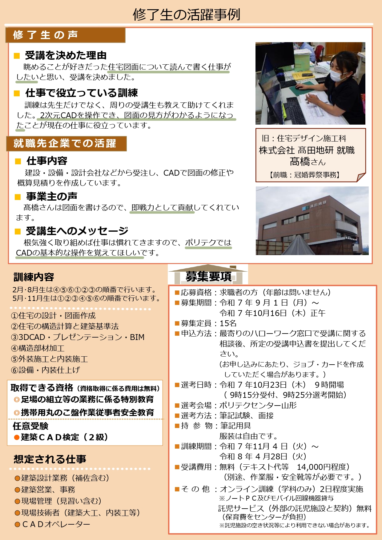 ポリテクセンター山形 11月受講生募集中! 建築CAD施工科