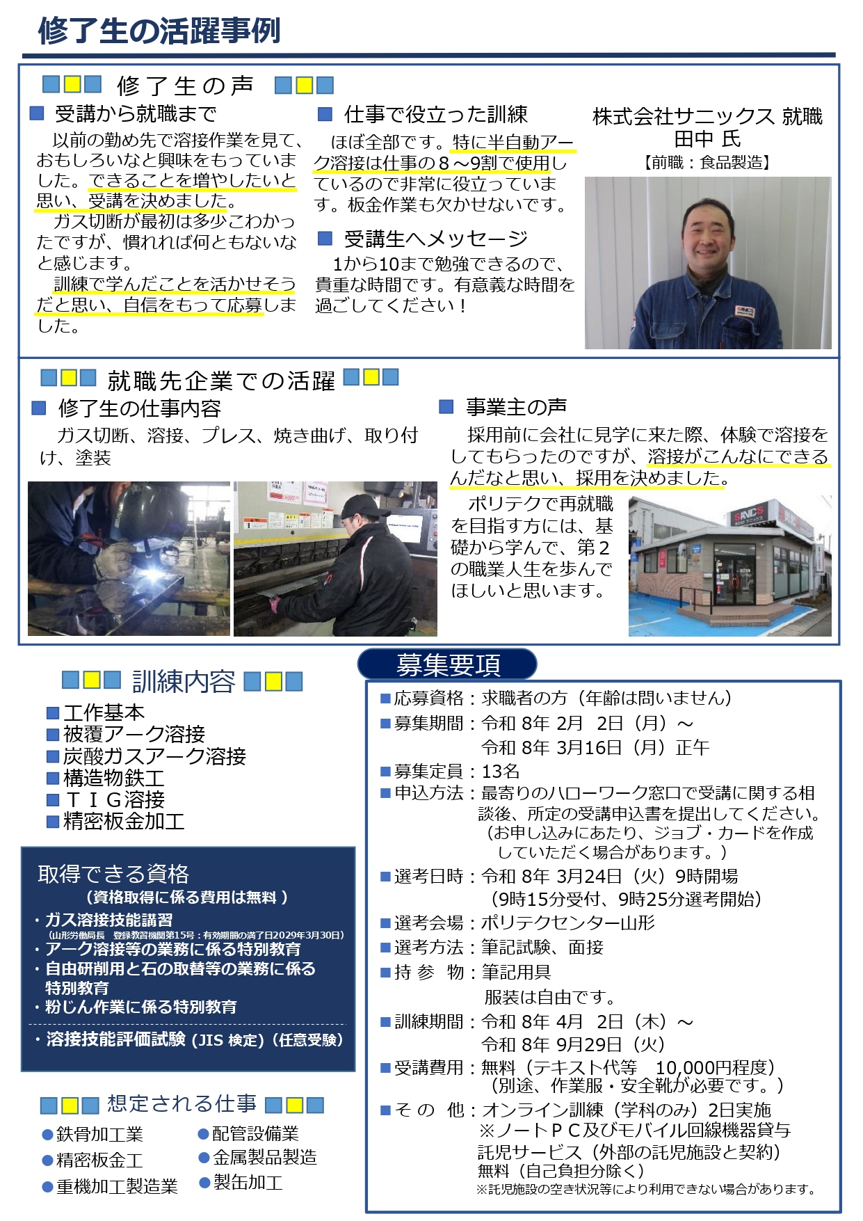 ポリテクセンター山形 4月受講生募集中! 溶接施工科