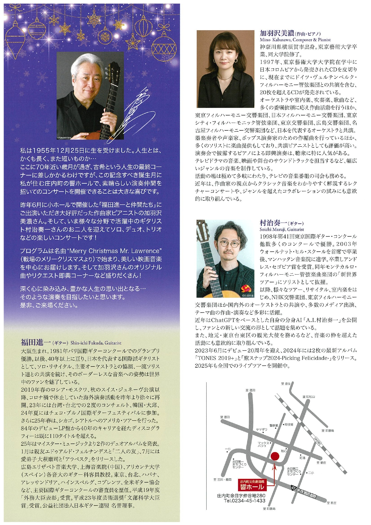 関連ページ | 福田進一 with 加羽沢美濃&村治奏一 コンサート | 庄内町文化創造館響ホール |