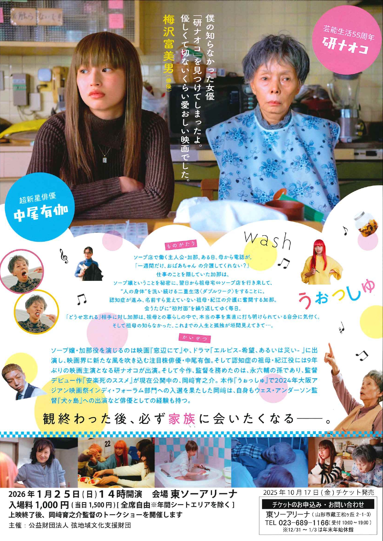 内容 | 各界の著名人が絶賛した映画『うぉっしゅ』の上映会と、脚本・企画・編集も手がけた岡﨑育之介監督に作品にこめたメッセージや、当館にもゆかりが深い祖父・永六輔さんの思い出などをお話しいただきます。ぜひご来場ください。 《本作品は全編にわたって性的表現は存在せず、主人公・祖母の交流に重きを置いた心の成長を描く物語です》 |
