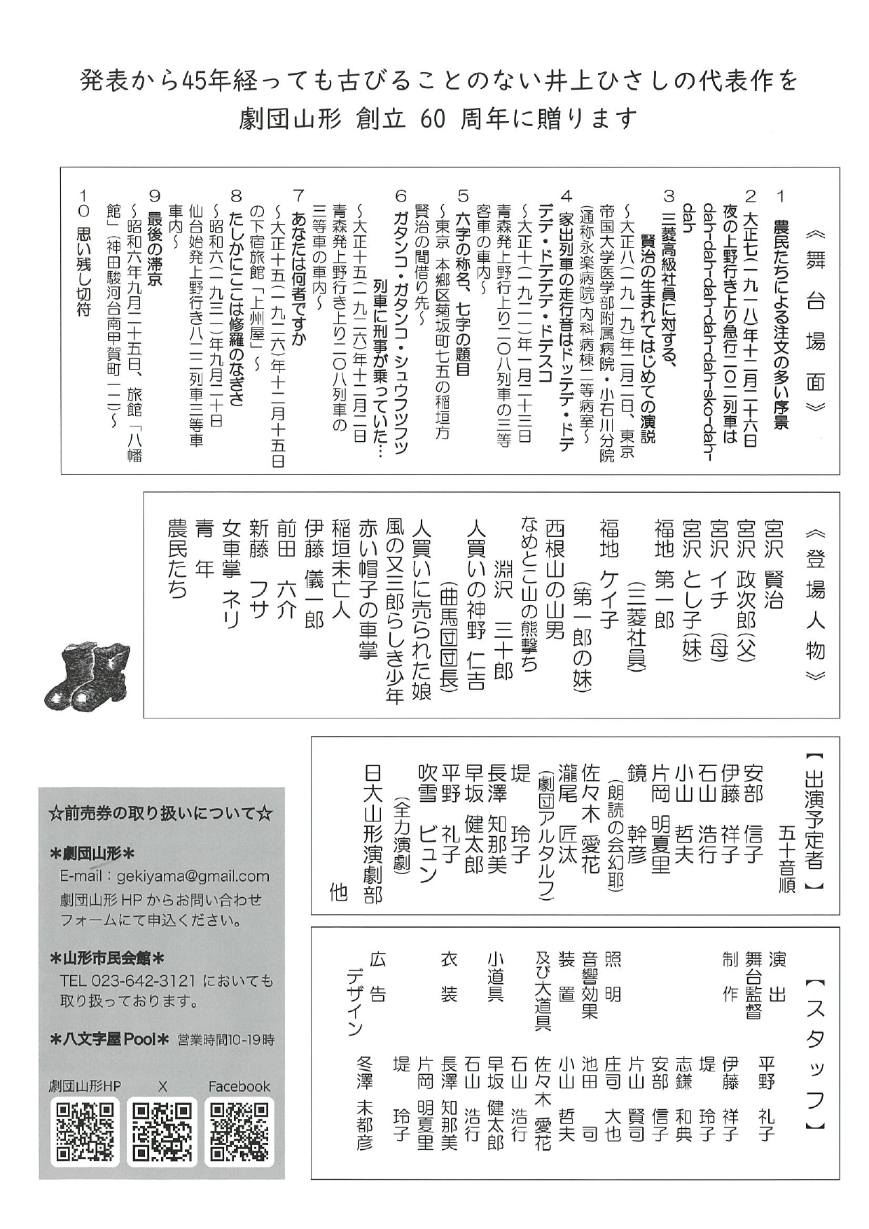 劇団山形創立60周年記念・第88回公演「イーハトーボの劇列車」