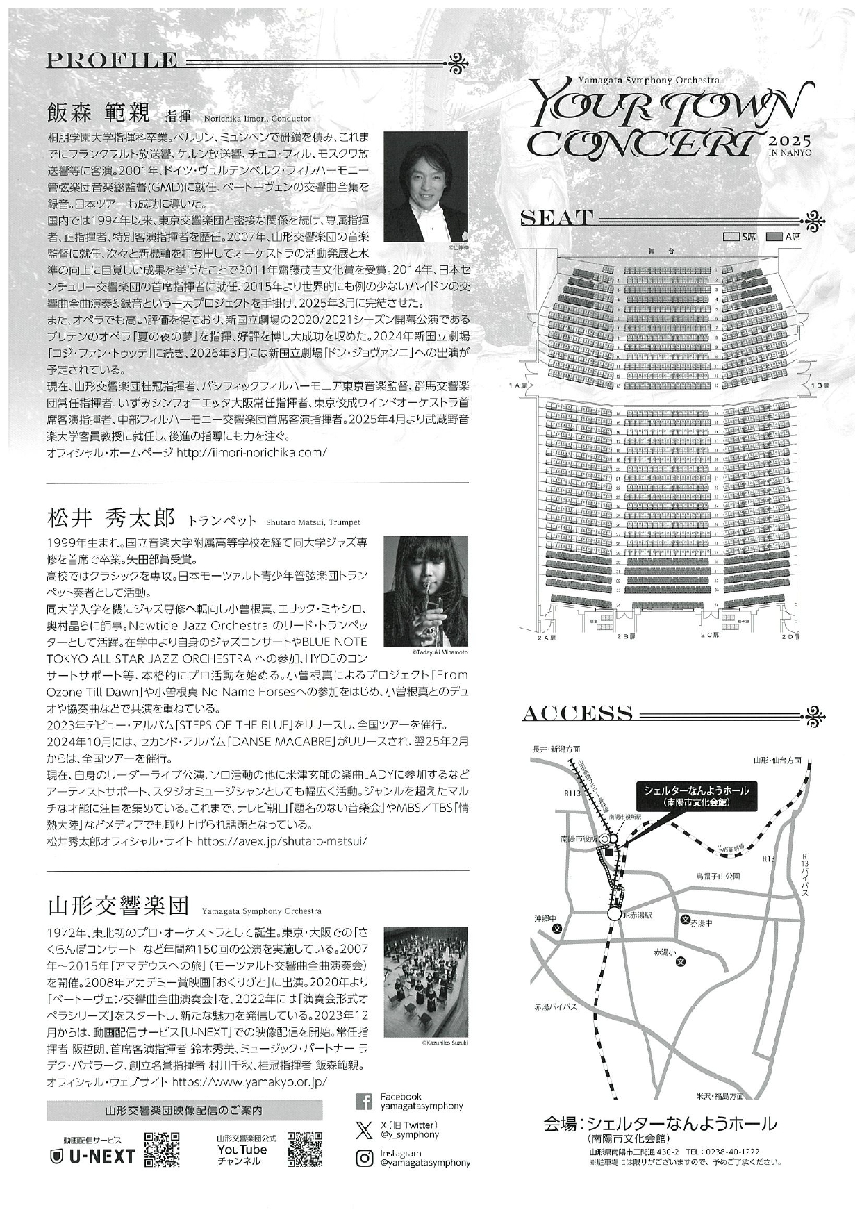 申込方法:チケット取扱:▷山響チケットサービスhttps://p-ticket.jp/yamakyo ▷チケットぴあ[Pコード:284-901]https://t.pia.jp/ ▷シェルターなんようホール