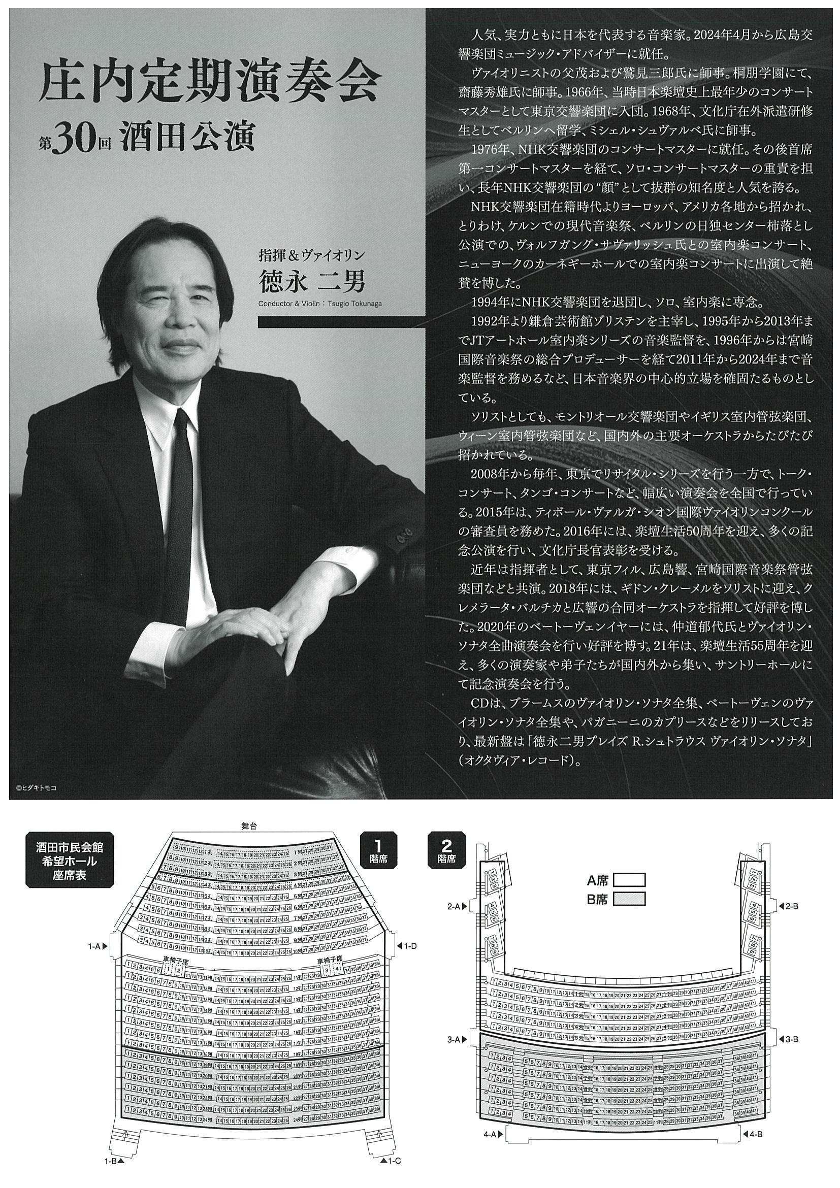 | 申込 | 方法:チケット取扱:●山響WEBチケット ●チケットぴあ(Pコード:284-880) [鶴岡市] ●八文字屋鶴岡店 ●おんがくハウス [酒田市] ●みずほ八文字屋 ●希望ホール [庄内町] ●響ホール 期間: |