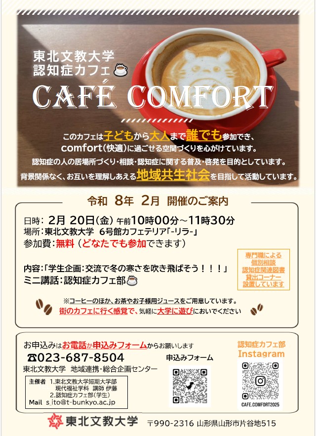 東北文教大学 認知症カフェ CAFE COMFORT 2月のご案内