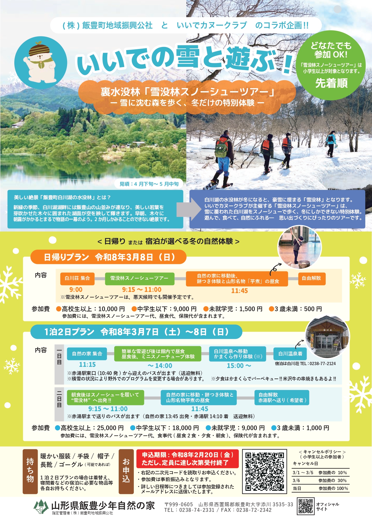 場 所: 山形県飯豊少年自然の家(飯豊町大字添川3535-33)、白川荘(西置賜郡飯豊町数馬218-1)