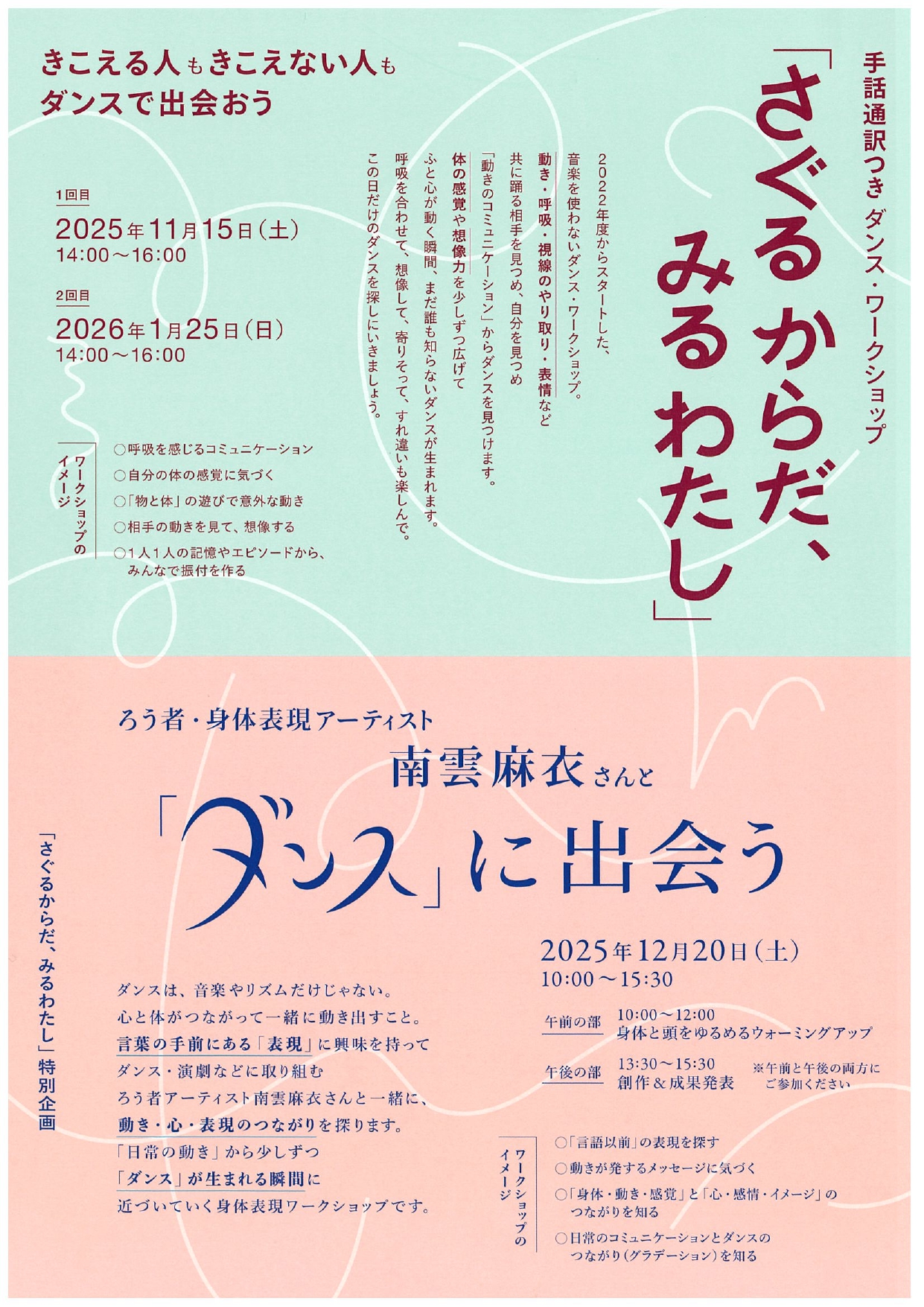 手話通訳つきダンス・ワークショップ さぐるからだ みるわたし/ろう者・身体表現アーティスト南雲麻衣さんと「ダンス」に出会う