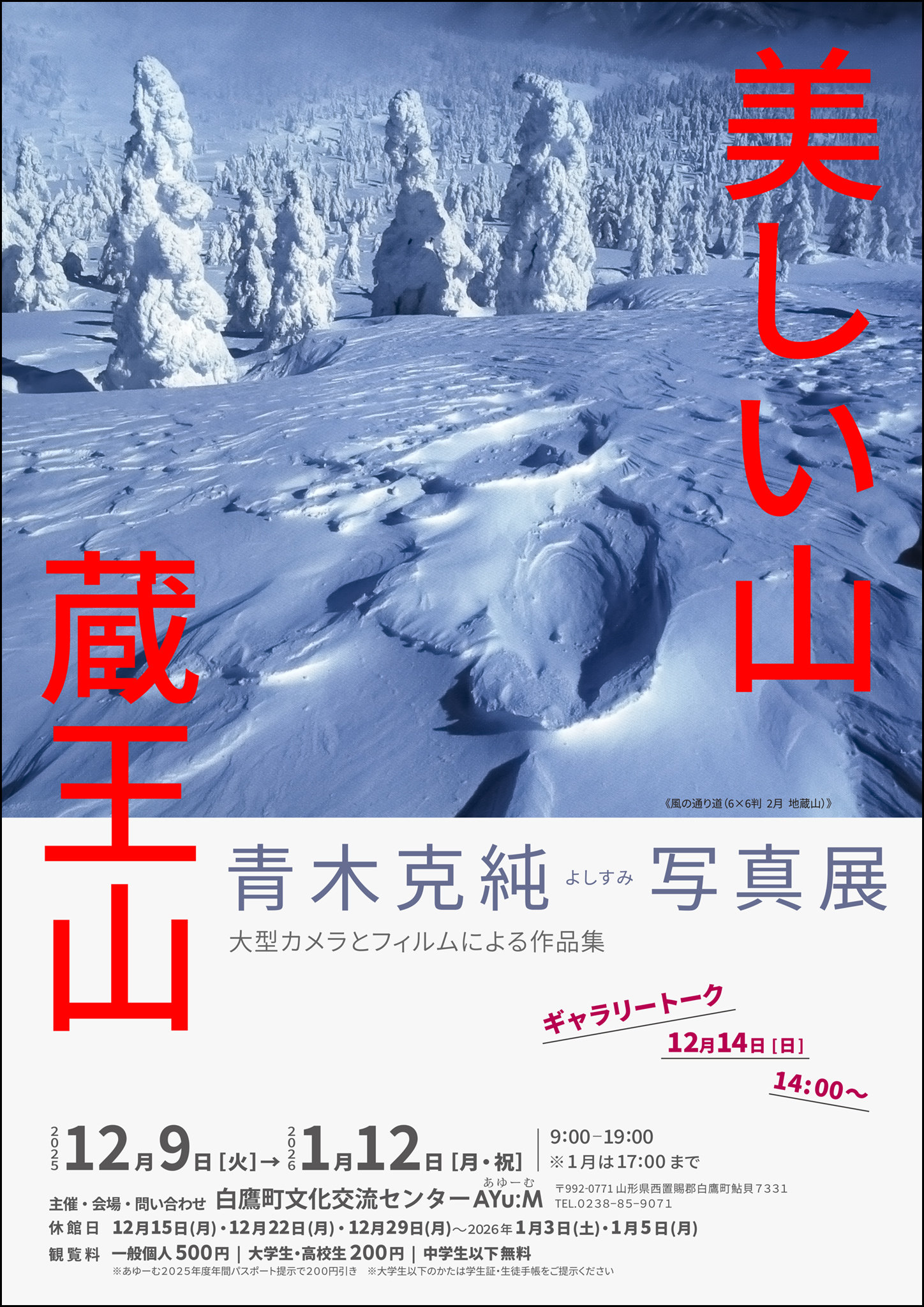 場 所: 白鷹町文化交流センター AYu:M あゆーむ(西置賜郡白鷹町鮎貝7331番地) ギャラリー