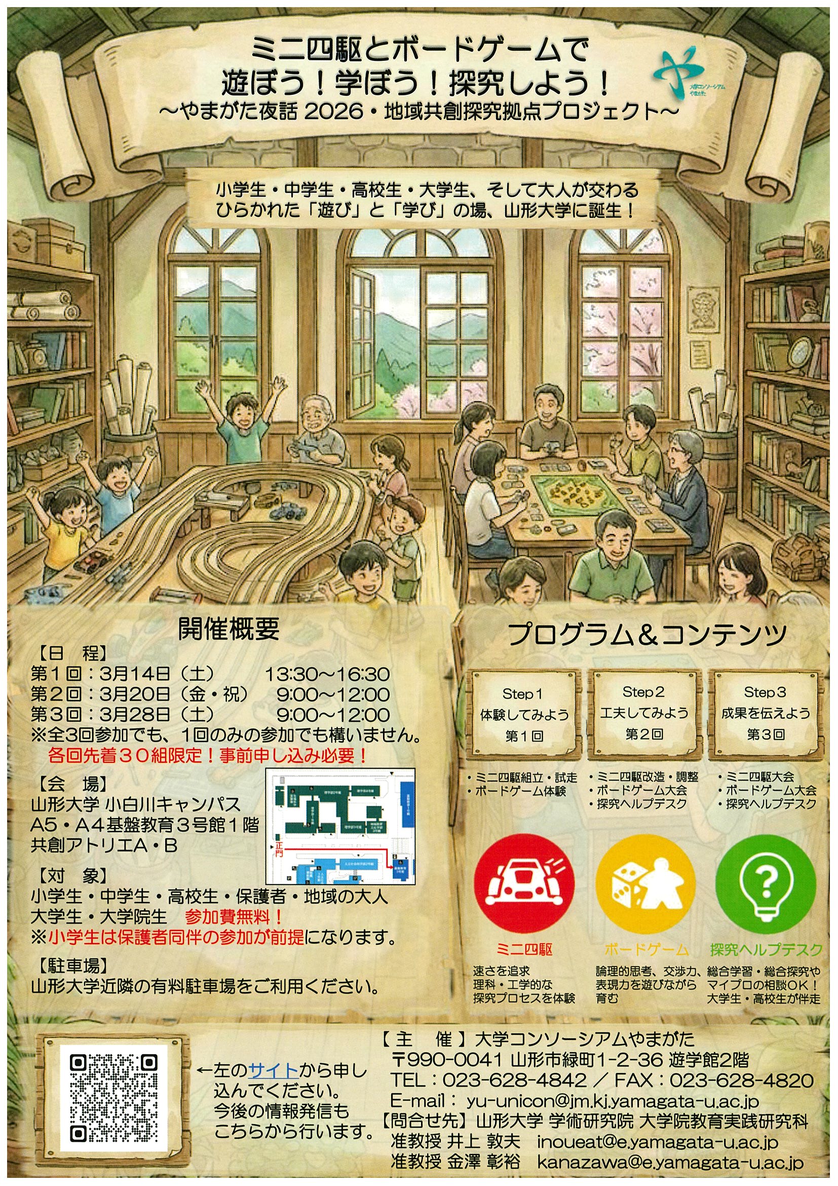ミニ四駆とボードゲームで遊ぼう! 学ぼう! 探求しよう!~やまがた夜話2026・地域共創探求拠点プロジェクト~