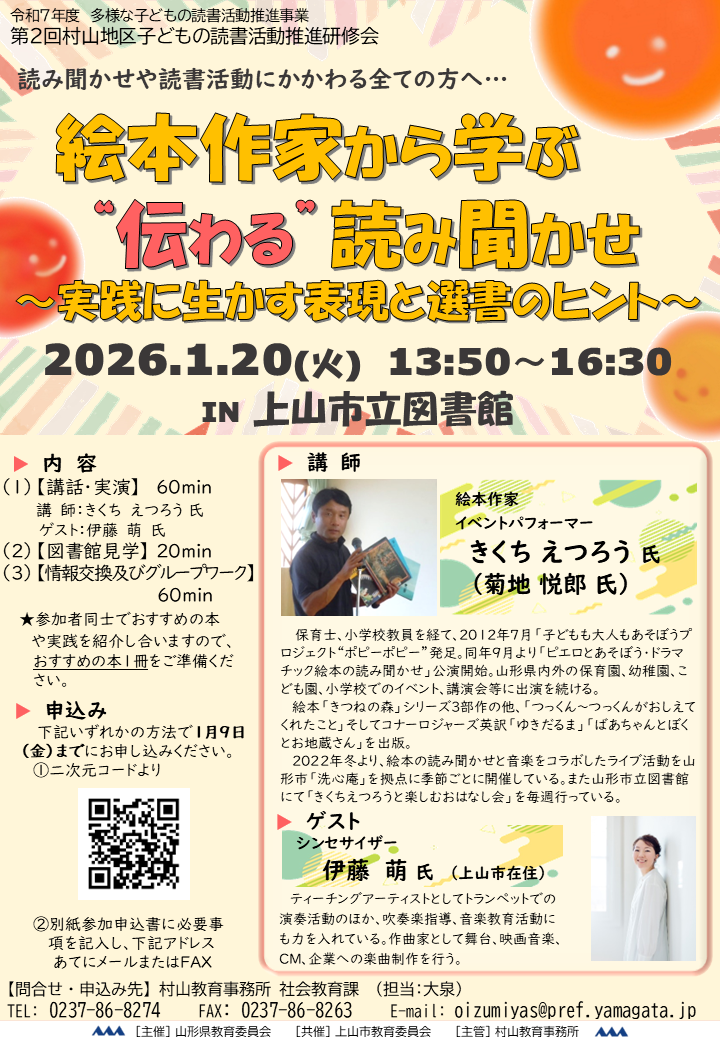 第2回村山地区子どもの読書活動推進研修会 「 絵本作家から学ぶ”伝わる”読み聞かせ~実践に生かす表現と選書のヒント~」